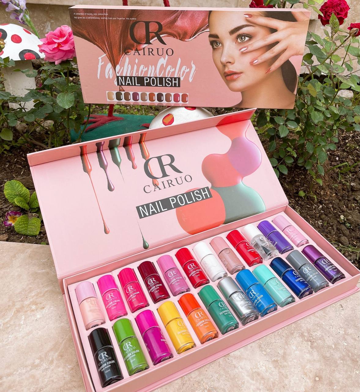 هم مات هم شاین مشکی و سفید و برق ناخون هم داره💃🏻 با تنوع رنگ خیلی بالا و خوشگل سریع خشک میشه خیلی بافت پر و یکدست و غلیظی داره لاک ها فول سایزن هر لاک ۱۶ میل پکیجش هم خیلی شیک و محکمه . مناسب برای کادو