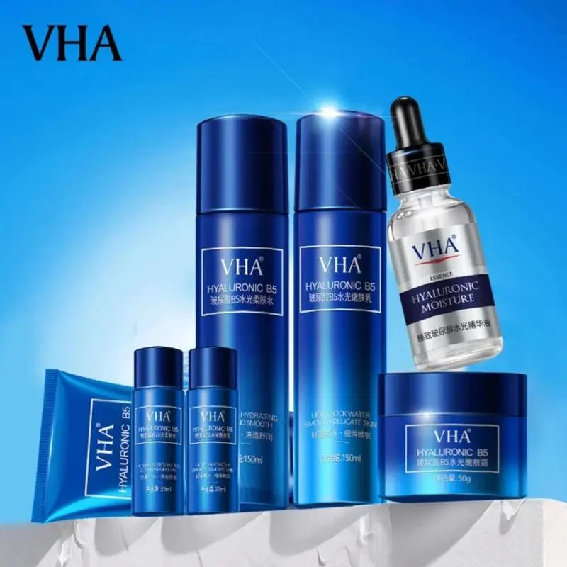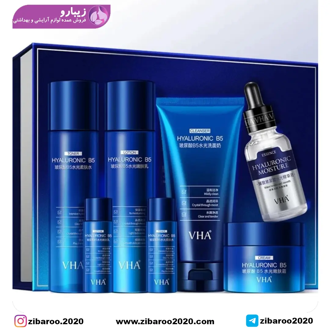 پک مراقبت پوستی هیالورونیک اسید B5 برند VHA دارای 7 محصول تخصصی در زمینه آبرسانی کامل پوست صورت و همچنین میتواند خشکی پوست را به گونهای مهار کند که انگار پوست صورت را با لایهای نرم و مرطوب ولی کاملا سبک پوشیده شده است.